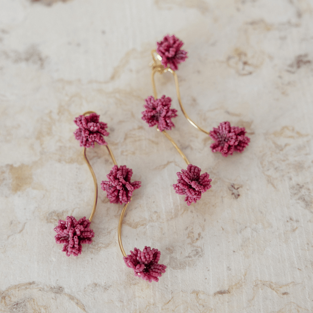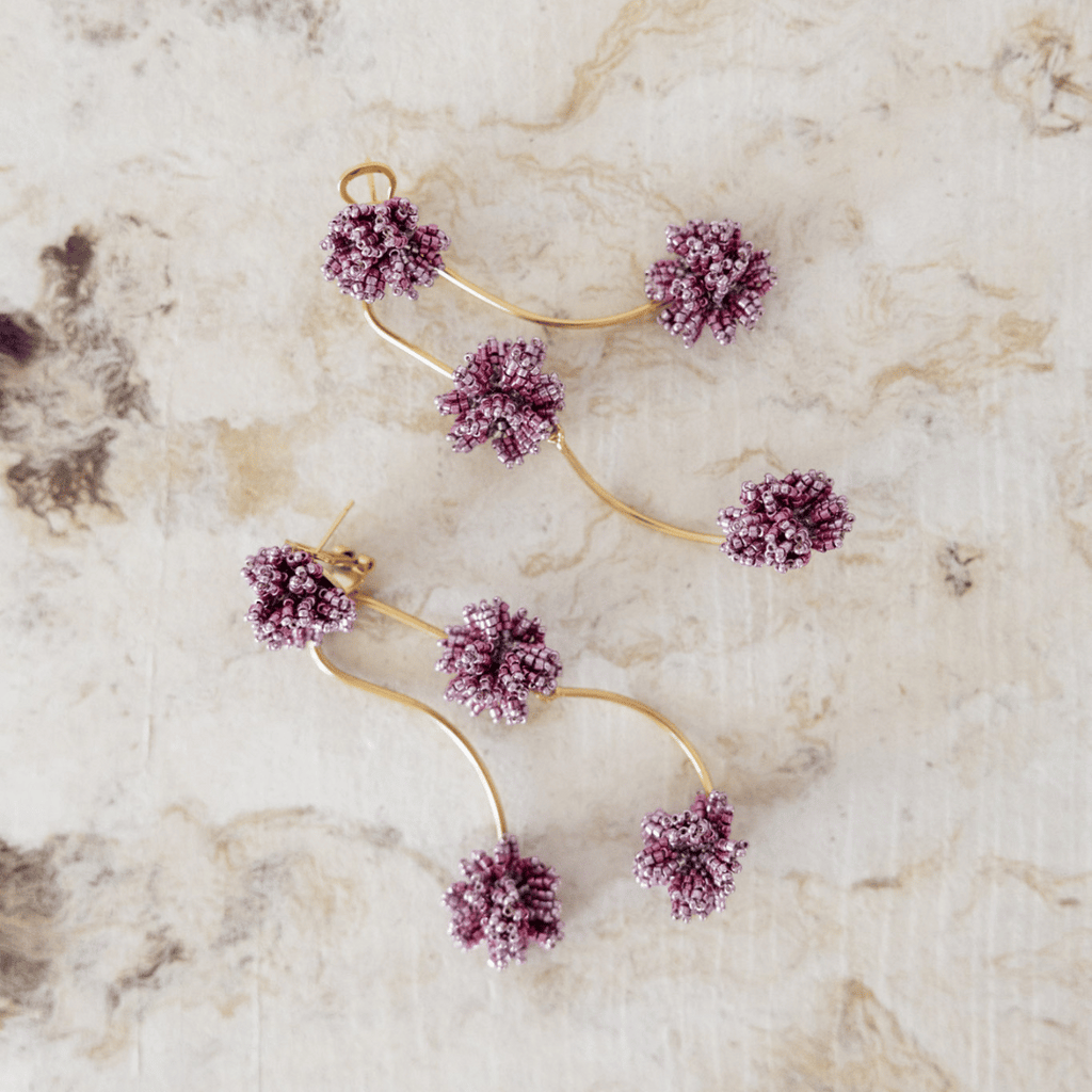 Piezas elaboradas completamente de forma artesanal, compuestas por cuentas de vidrio, herrajes en Plata de Ley 950 y posteriormente bañadas en oro de 24K.