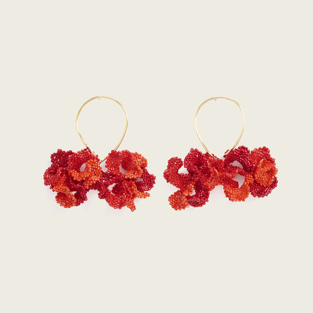 Piezas elaboradas completamente de forma artesanal, compuestas por cuentas de vidrio, herrajes en Plata de Ley 950 y posteriormente bañadas en oro de 24K.